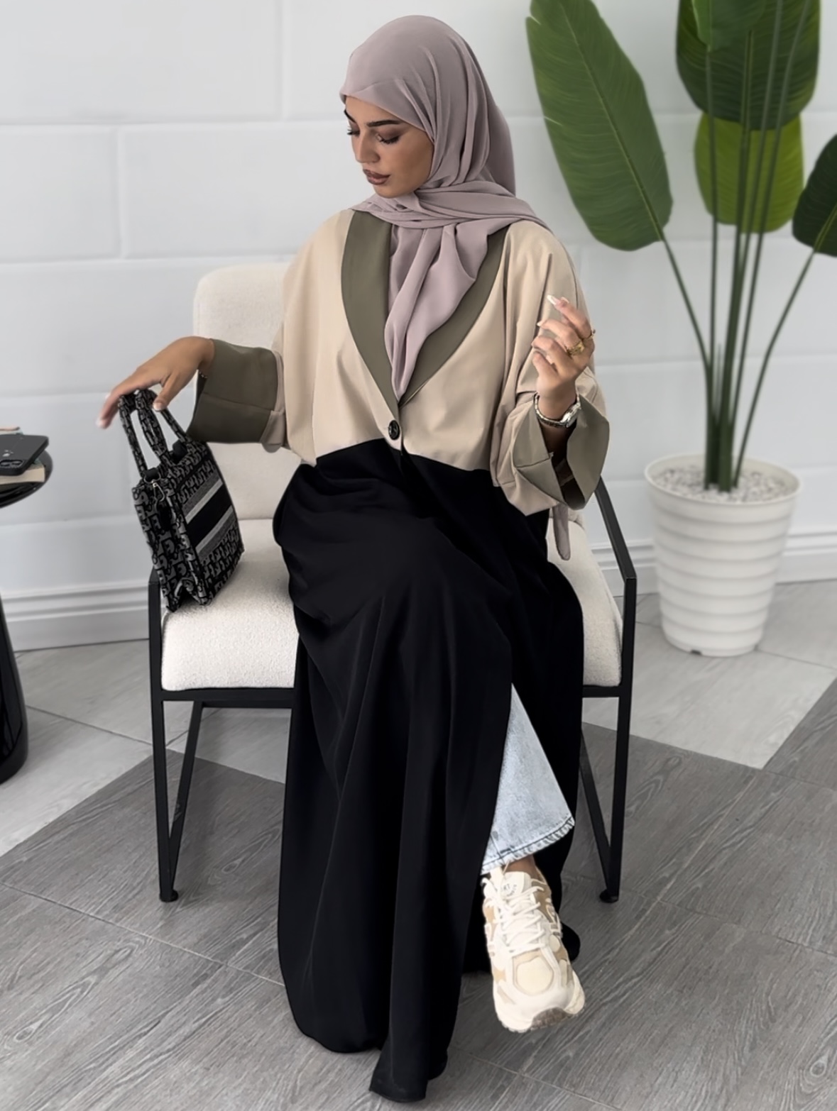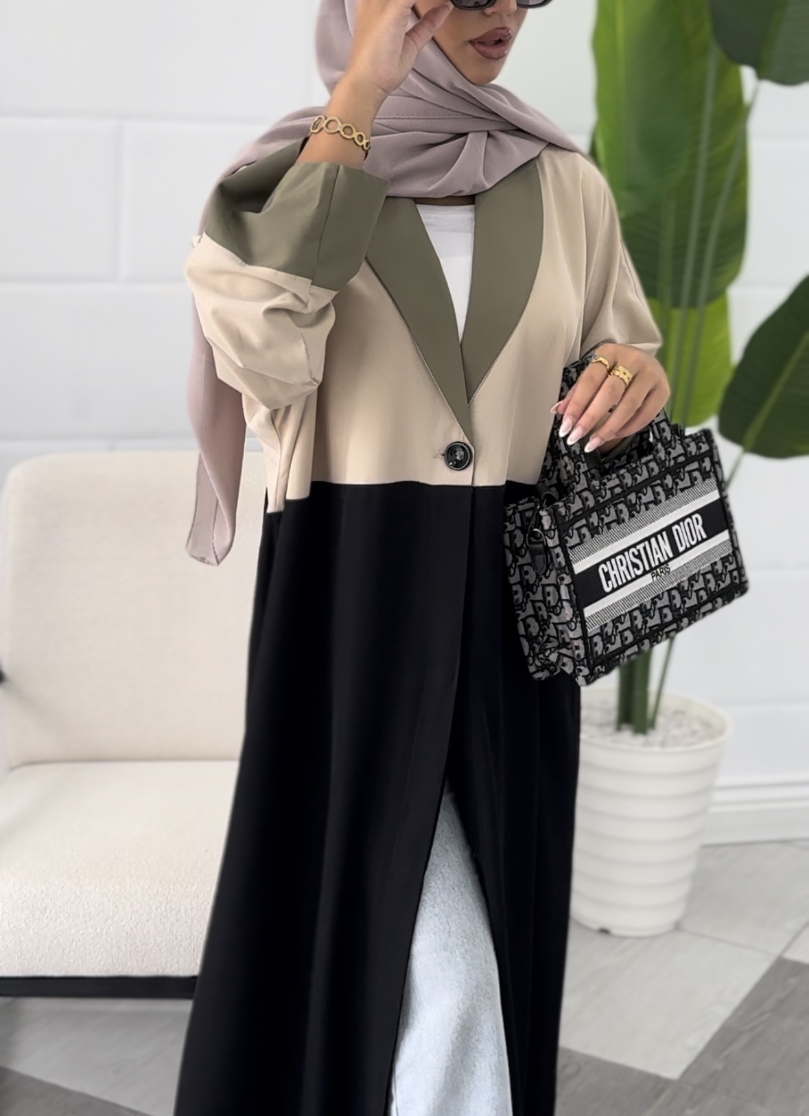 Découvrez notre abaya  » blazer tricolore  » , qui se ferme de haut jusqu’au bas,  ou élégance et modernité se rencontre . Confectionné dans un tissu de haute qualité. Elle se distingue par ses 3 couleurs  harmonieuse , parfaite pour un style chic et raffiné au quotidien .